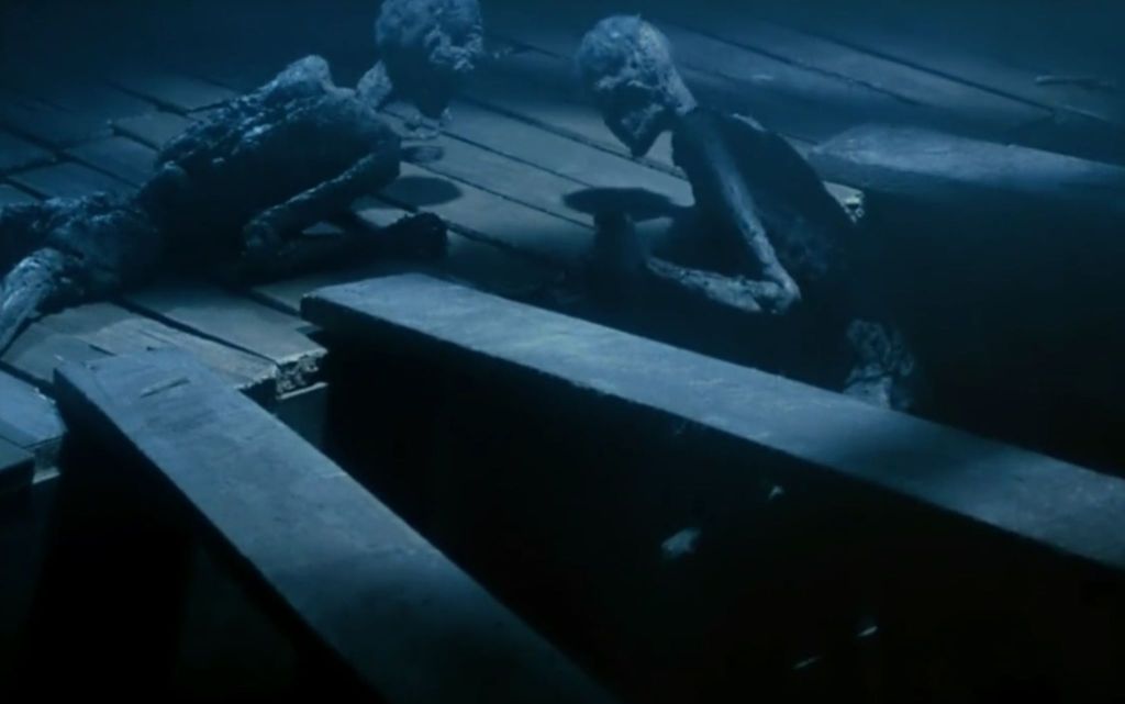 And, of course, we shouldn’t forget the shrivelled stop-motion corpses in the temple. These undead dudes shuffle around the building in the early part of the film, trying to get hold of the hero, but thanks to a series of comedic, lucky mishaps he remains completely unaware that the zombies are there, eventually killing them with sunlight without ever noticing them!