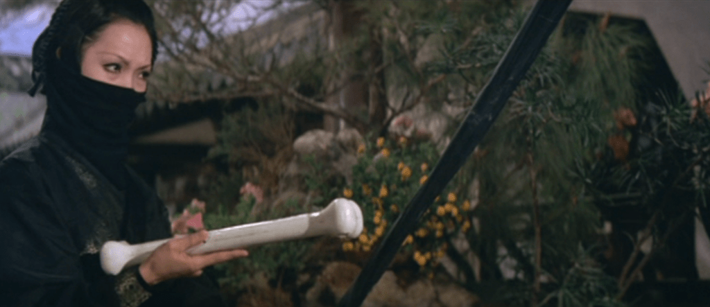 Tuan Yu is helped by a girl called Ling Ar, who has the power to make snakes glow and bore into people’s bodies, and masked swordswoman Miss Moo, who is revealed to be his stepsister.