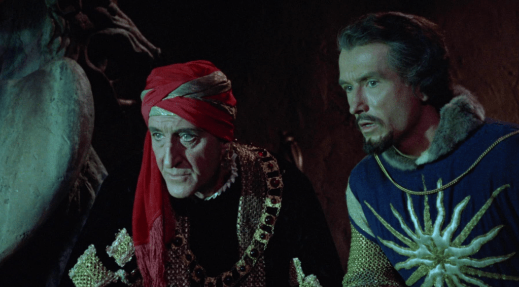 Princess Helene (Helm) is kidnapped by the evil wizard Lodac (Rathbone), who intends to feed her to his two-headed dragon in a week’s time. Young hero George (Lockwood) vows to save Helene, whom he loves, and he isn’t deterred by the fact that Lodac has announced there are seven deadly curses which need to be overcome to reach the dragon’s lair.