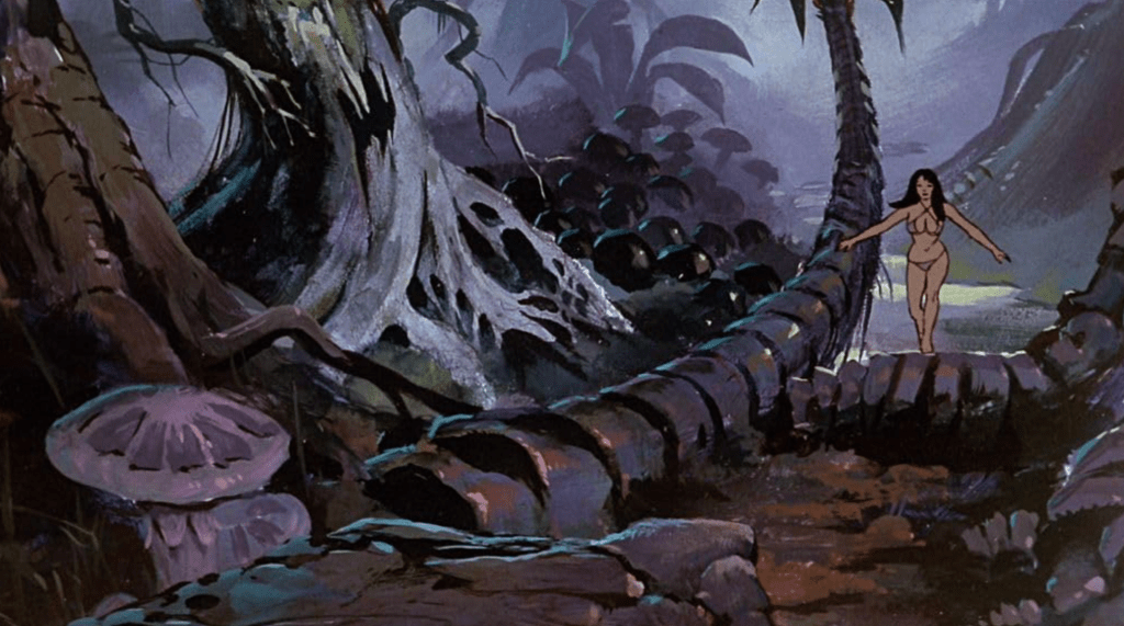 The design of the production definitely has Frazetta’s aesthetic fingerprints plastered all over it. Amongst other things, Frazetta created sculpted busts to aid the animators, and he produced character designs.