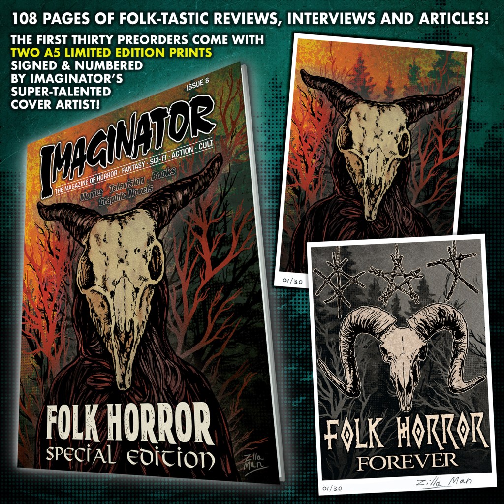 Imaginator magazine’s FOLK HORROR SPECIAL EDITION will be available everywhere (UK, US, Europe, Japan, etc) from mid-April, via Amazon and other fine retailers!