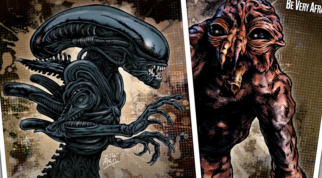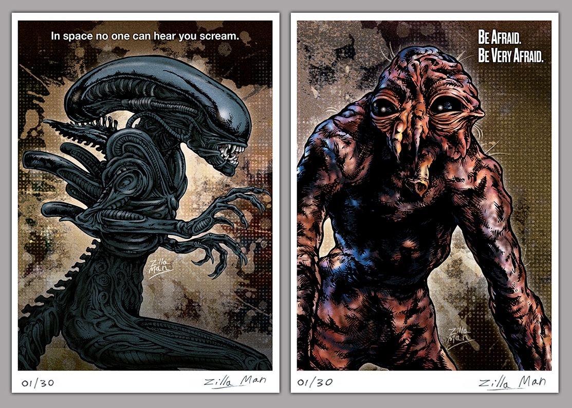 One print boasts Zilla Man’s rendition of the iconic ALIEN, and the other print is Zilla Man’s illustration of the ‘Spacebug’-stage Brundlefly creature from THE FLY!