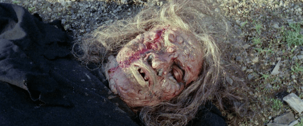 The lumpy-fleshed, monstrous witch (played by Joe ‘Flash’ Riley under a lot of makeup) is definitely the main reason to watch this flick. This wild-haired, truly grotesque horror-hag is such an exaggerated interpretation of what a witch should look like that I think she’s bloody marvellous!