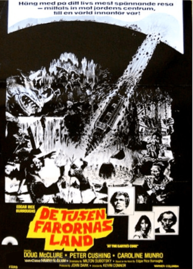 Finally, here’s the cover of the film tie-in rerelease of Edgar Rice Burroughs’ novel, featuring the likenesses of Doug McClure and Susan Penhaligon.
