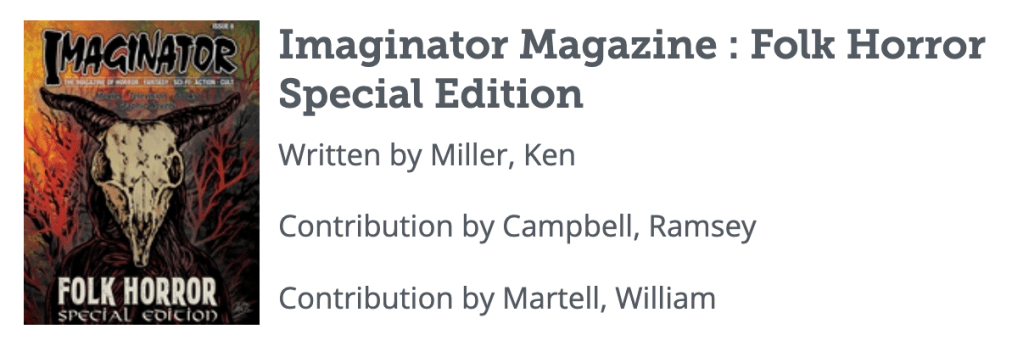 Just a reminder that Imaginator Magazine’s Folk Horror Special Edition is still haunting the world, waiting for you to find it and read it!
