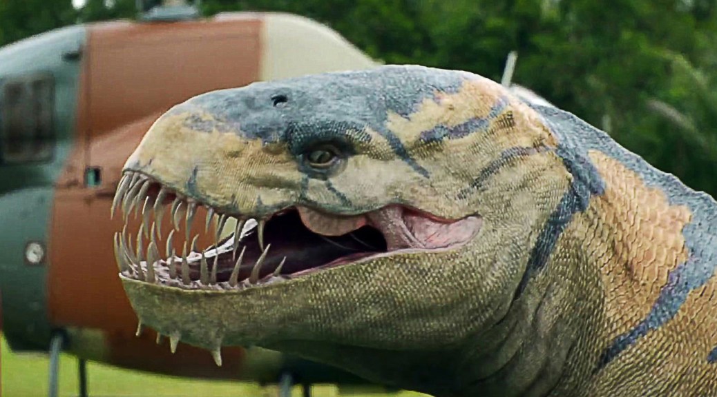 Many critics and viewers have mercilessly ripped into this movie, but I think it’s a really enjoyable, fun creature flick! Any movie that begins with a prologue set in the Cretaceous Period, showing a huge Tyrannosaurus Rex getting munched by a megalodon (okay, I know megalodons didn’t exist during the age of the dinosaurs, but so what?) is obviously letting viewers know that they need to sit back and enjoy the monster antics coming up!