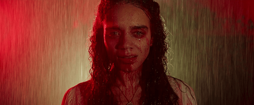 Director Ben Wheatley, better known for off-kilter, sometimes quirky, sometimes psychedelic low budget horror pics like KILL LIST (2011), SIGHTSEERS (2012), A FIELD IN ENGLAND (2013), and IN THE EARTH (2021), here goes into full blockbuster mode, presenting us with a mega-enjoyable third act that sees the tourists at the holiday resort of Fun Island getting attacked by super-sized sharks, a huge octopus, and swarms of smaller amphibious predators! There’s a fun shot seen from the inside of a megalodon’s mouth as it chows down on hapless swimmers, and there’s a gag where a tentacle disrupts a waterside wedding!