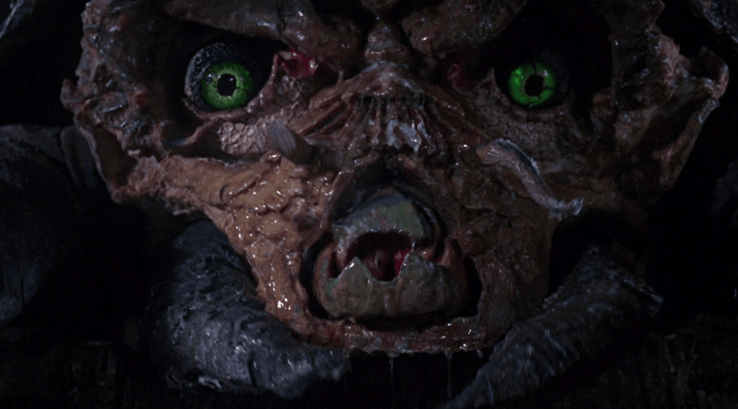 And finally, here’s a shot from John Carpenter’s IN THE MOUTH OF MADNESS (1994): John Trent (Sam Neill) looks at a poster for a fictional horror book called ‘The Hobb’s End Horror’, which is a nod to the name of the subway station in QUATERMASS AND THE PIT.