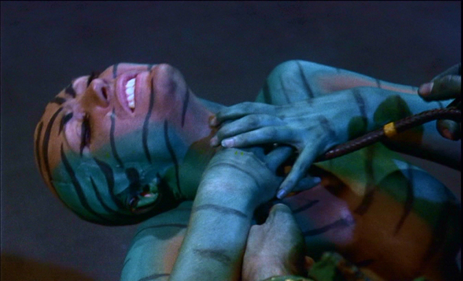 Though I admit the film would definitely have benefitted from stop-motion critters (as, say, featured in Hammer’s ONE MILLION YEARS BC), this fog-enshrouded production is a sweaty, colourful, bizarre, pulp adventure treat.