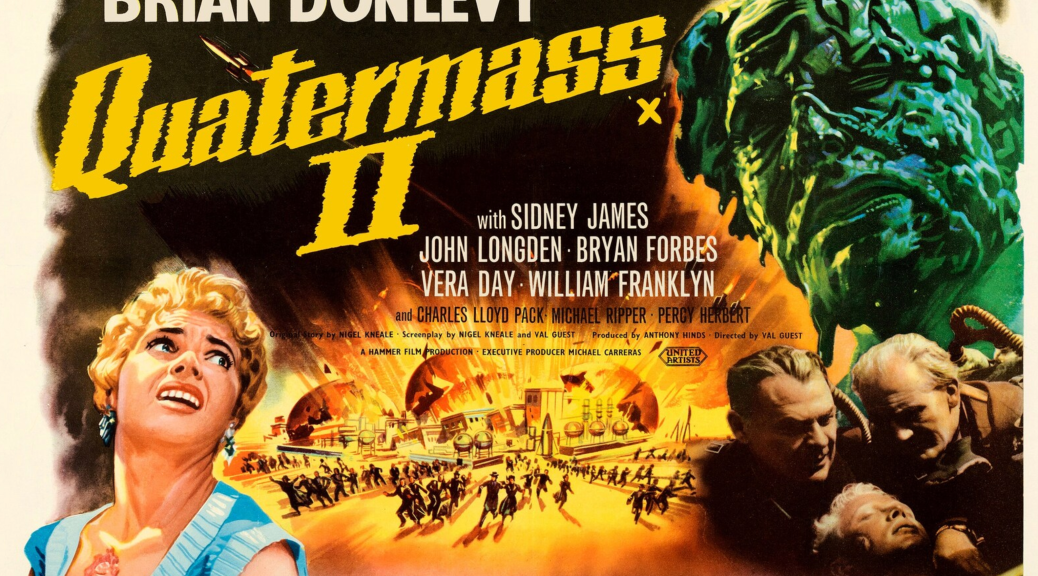 Known as ENEMY FROM SPACE in the US, this film adaptation of the BBC sci-fi-horror television serial sees the brusque, no-nonsense Professor Bernard Quatermass (Donlevy) uncovering the fact that a UK industrial plant at Winnerden Flats, which claims it is manufacturing synthetic food, is actually an acclimatisation bridgehead for an alien invasion.
