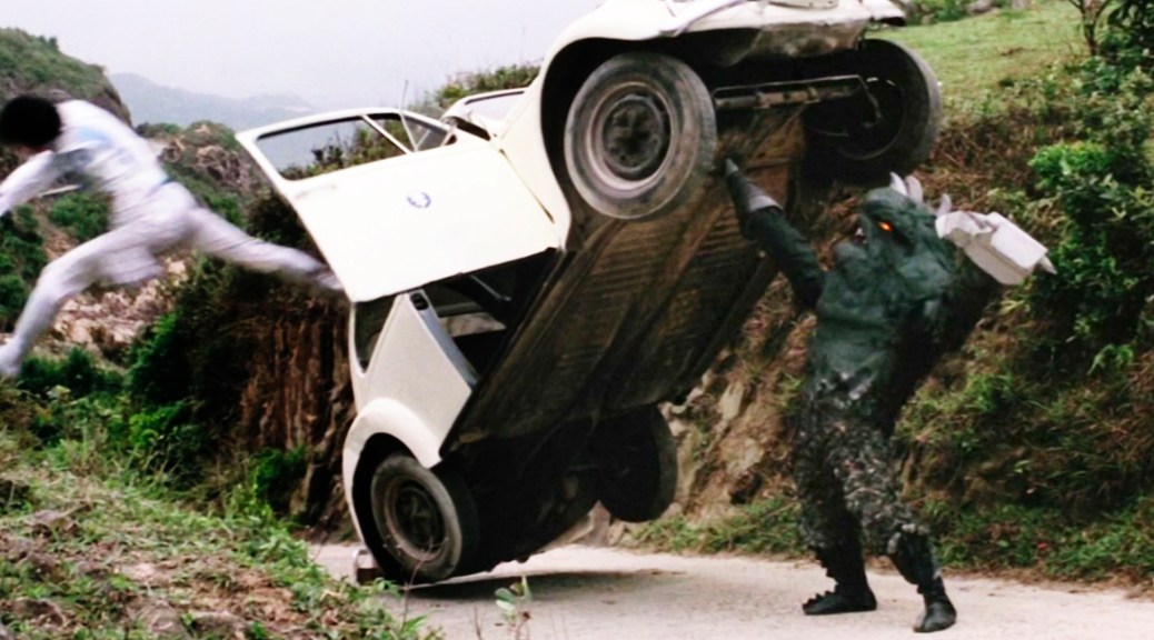 There are loads of fun sequences to watch out for in this film, one highlight being Plant Monster’s attack on Professor Liu’s research building, where the vegetable-beast becomes a mass of giant, fast-growing rubber vines! The massive plant envelopes the place and the battle that follows is a real hoot, with Hong Kong stunt guys getting knocked around by the terrible tendrils!