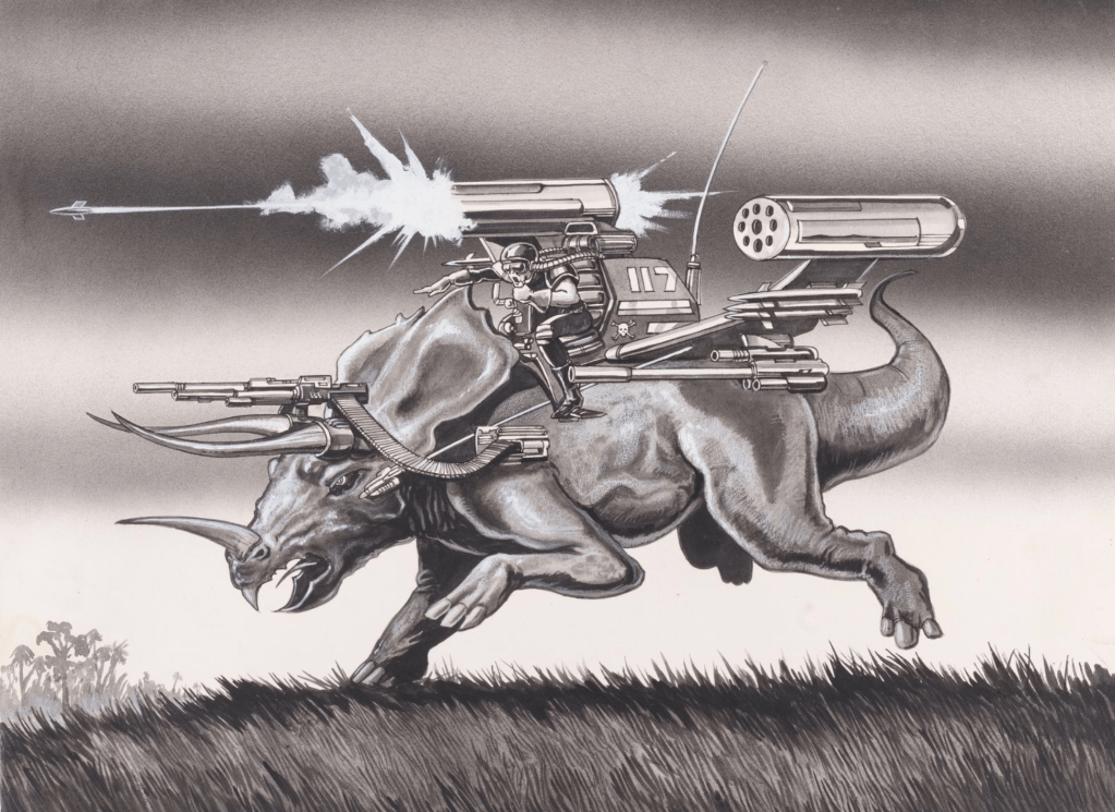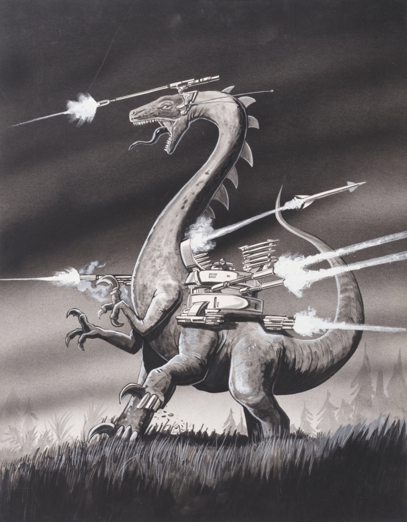 Gwangi-inspired cover art for the 1983 May issue of ‘Fantasy Book’ magazine, by Alan Gutierrez