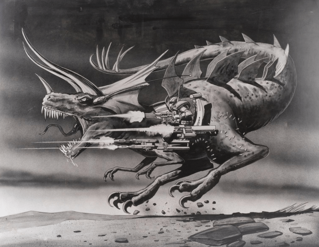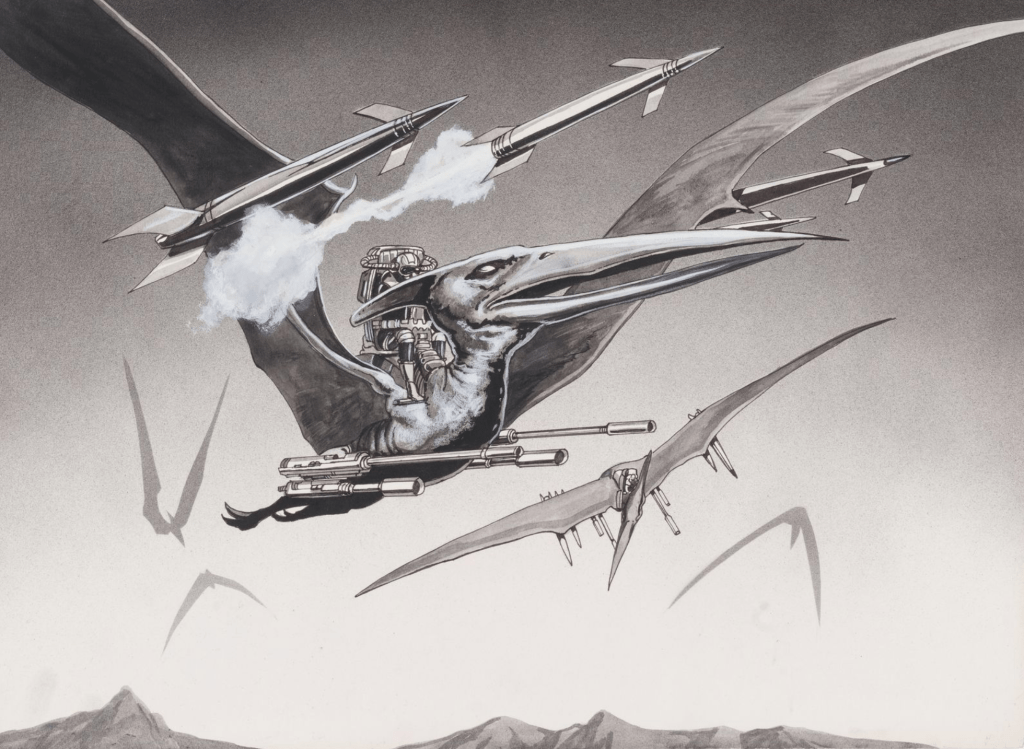 Illustrator & designer Ross Persichetti produced some illustrations, featured on ArtStation, that were inspired by THE VALLEY OF GWANGI. Ross’ faux Gwangi sequel was called ‘Return to the Valley of Gwangi’